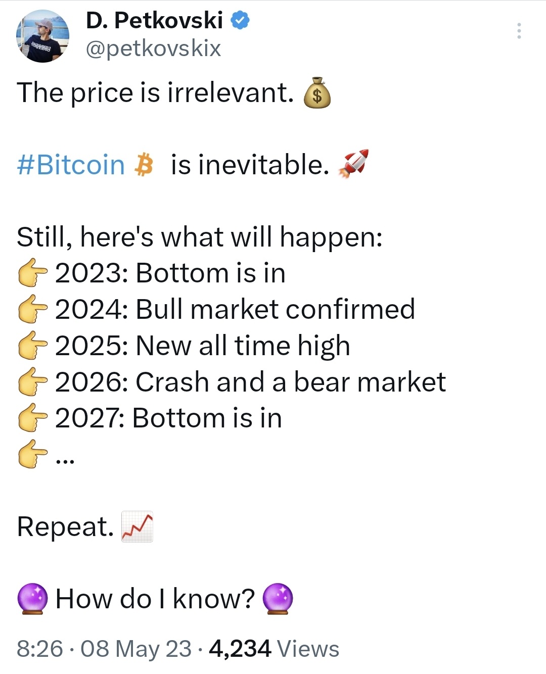 I think that the 4 year cycle remains applicable because the majority of the market doesn’t understand Bitcoin. Most people actually compare it to the Tulip mania (which lasted one year and never recovered).